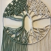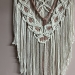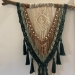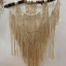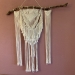 Macramé kleed met vlinder inprint in het midden. Gemaakt van twee kleuren 5 mm katoendraad. Bevestigd aan een met de hand geselecteerd stuk hout.